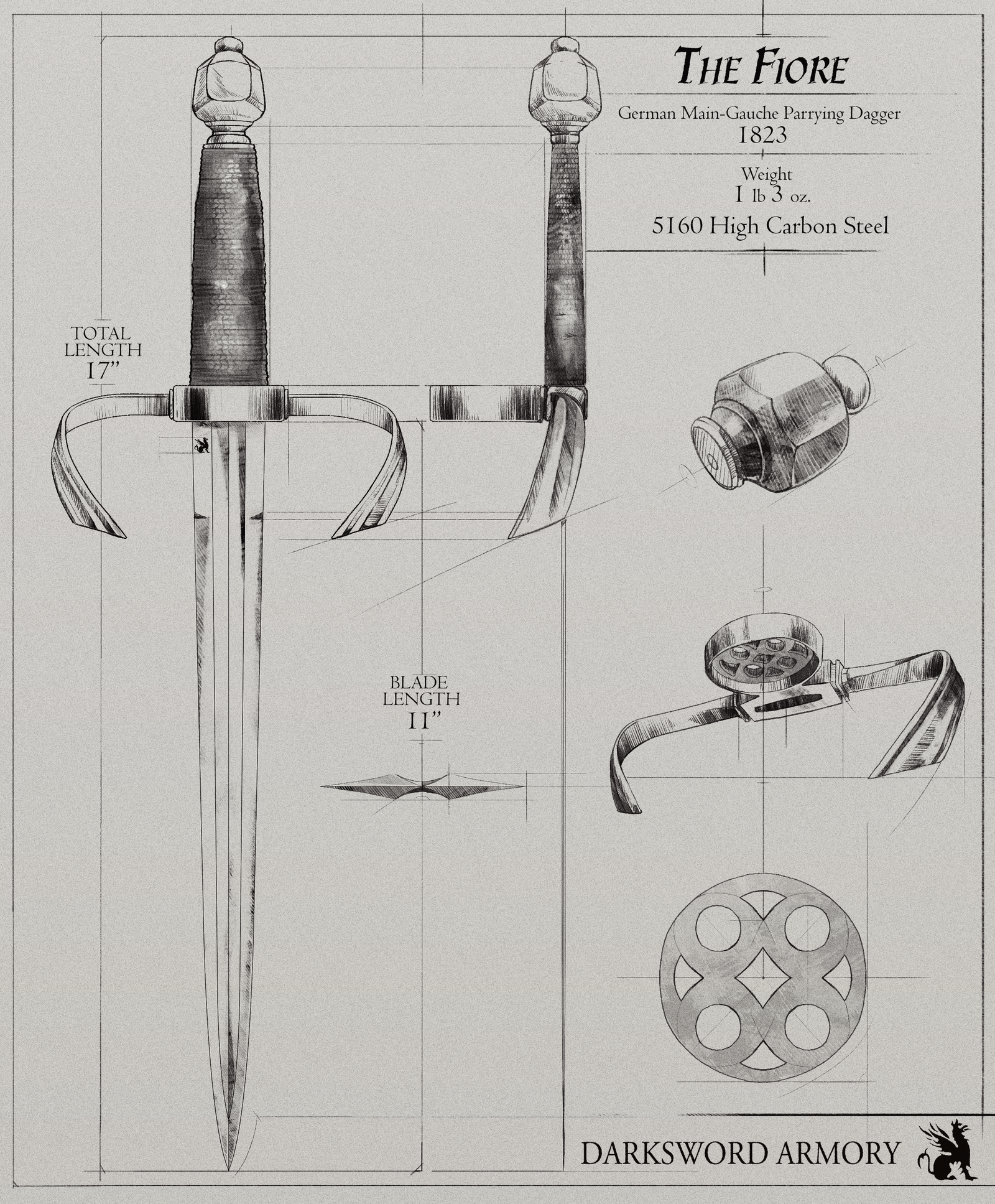 but The Flower of Battle is what he was best known for. Fiore was one of the masters who inspired swordplay for generations to come, even to the era in which this parrying dagger was made.